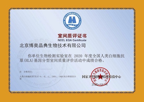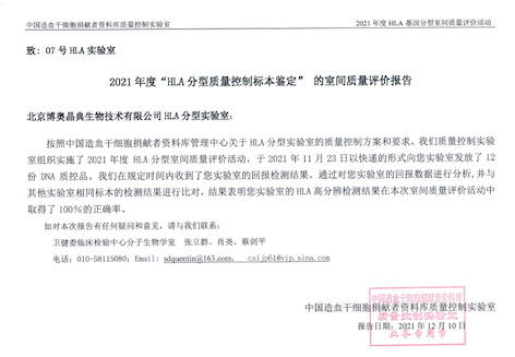 “HLA基因分型室間質(zhì)量”室間質(zhì)評證書