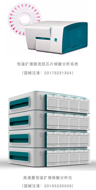 應(yīng)用以上兩項(xiàng)國家標(biāo)準(zhǔn)技術(shù),博奧首創(chuàng)恒溫?cái)U(kuò)增微流控病原體核酸檢測芯片系統(tǒng),并通過教育部組織的專家技術(shù)鑒定“項(xiàng)目技術(shù)達(dá)到國際領(lǐng)先水平,填補(bǔ)了國內(nèi)微納生物醫(yī)學(xué)檢測科學(xué)儀器和醫(yī)療儀器的空白”。早在2015年和2016年,博奧恒溫?cái)U(kuò)增微流控芯片核酸分析儀和呼吸道病原菌核酸檢測試劑盒先后通過國家藥品監(jiān)督管理局創(chuàng)新醫(yī)療器械特別審批,雙雙獲得了三類醫(yī)療器械注冊證書。國家藥品監(jiān)督管理局對該產(chǎn)品給予了“國內(nèi)首創(chuàng),具有顯著的臨床應(yīng)用價(jià)值”的評價(jià)。由此改變了呼吸道感染診治領(lǐng)域長期存在的“盲人摸象”、“經(jīng)驗(yàn)用藥”的局面,引領(lǐng)國內(nèi)呼吸道病原菌檢測正式進(jìn)入“精準(zhǔn)時(shí)代”。