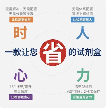 采用凍干微球?qū)@夹g(shù),將擴(kuò)增反應(yīng)所需試劑提前預(yù)混凍干,破局冷鏈運輸,讓儲運更省力節(jié)能。