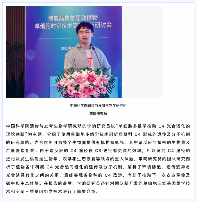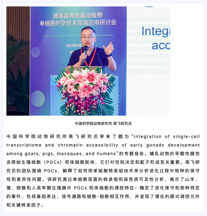 會(huì)議伊始,科研合作服務(wù)中心主任李彥澤博士對(duì)參會(huì)來(lái)賓表示熱烈歡迎,回顧了時(shí)空組學(xué)技術(shù)在動(dòng)植物領(lǐng)域的里程碑事件,并預(yù)祝首屆動(dòng)植物單細(xì)胞時(shí)空技術(shù)高端應(yīng)用研討會(huì)圓滿召開。