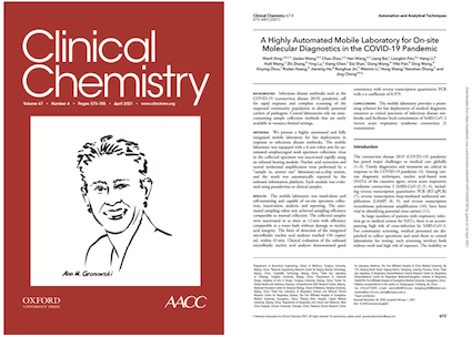基于全新一代先進(jìn)的芯片實驗室(Lab-on-a-chip)設(shè)計理念,化繁為簡,檢測時僅需將樣本保存液加入芯片,封閉芯片后即可上機(jī),手工操作小于1分鐘。生物反應(yīng)全程(包括核酸提取、核酸純化、擴(kuò)增反應(yīng)、核酸檢測和結(jié)果判讀等)均集成在一個整體密閉、內(nèi)部分區(qū)的微流控芯片內(nèi),由全自動核酸分析儀完成,因此無需專業(yè)分區(qū)實驗室,無需人工干預(yù),最大程度降低操作人員感染及樣本間交叉污染的風(fēng)險。35-45分鐘完成實驗全過程,檢測靈敏度可達(dá)150拷貝/毫升,相關(guān)成果在國際檢驗醫(yī)學(xué)界權(quán)威雜志Clinical Chemistry上發(fā)表。