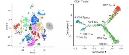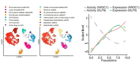 圖6 細(xì)胞群預(yù)測(左) 圖7 轉(zhuǎn)錄調(diào)控機制(右)